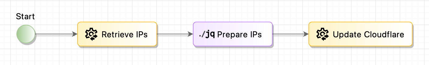 Prepare IPs: Upon retrieving the IP addresses, the template processes and prepares the data for integration with Cloudflare's custom IP lists. This involves formatting the IP addresses according to Cloudflare's specifications and organizing them in a structured manner for efficient handling.