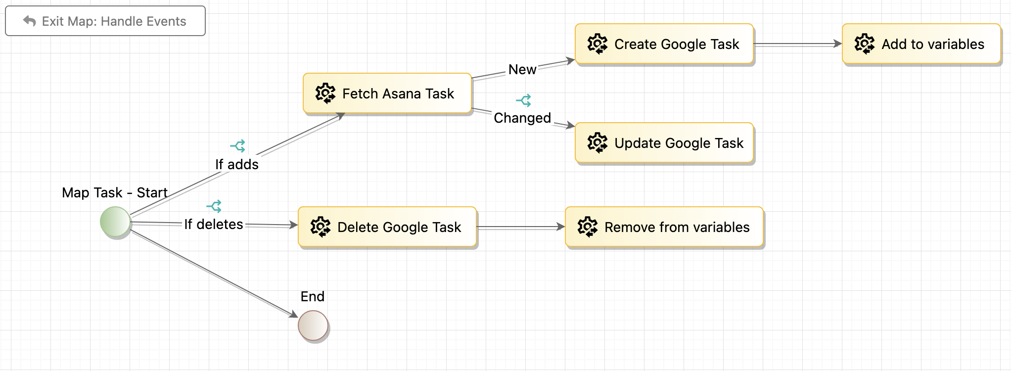 Enter the Handle Events Map task by clicking on the down arrow icon.