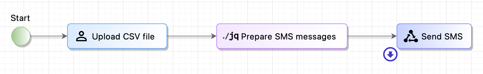 Amazon SNS API integration: The template utilizes a Map task to iterate through each entry and execute the Amazon SNS API to send SMS messages.